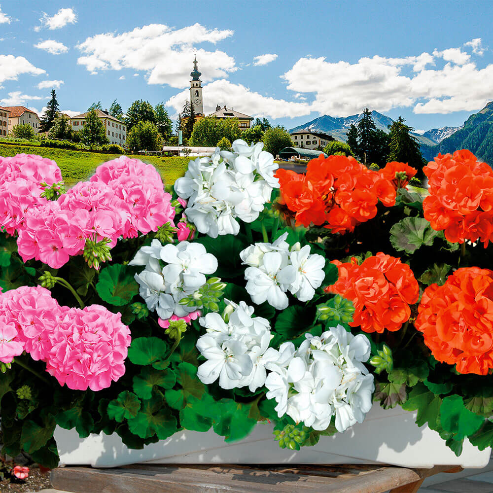 Obsah balenia:3 ks Muškát Sunrise® Clarissa vás okúzli veľkými, nápadnými kvetmi, žiarivo bielej farby. Skvelý kontrast k tejto výraznej bielej farbe tvoria tmavo zelené listy. Vzpriamený rast. Tieto muškáty budú