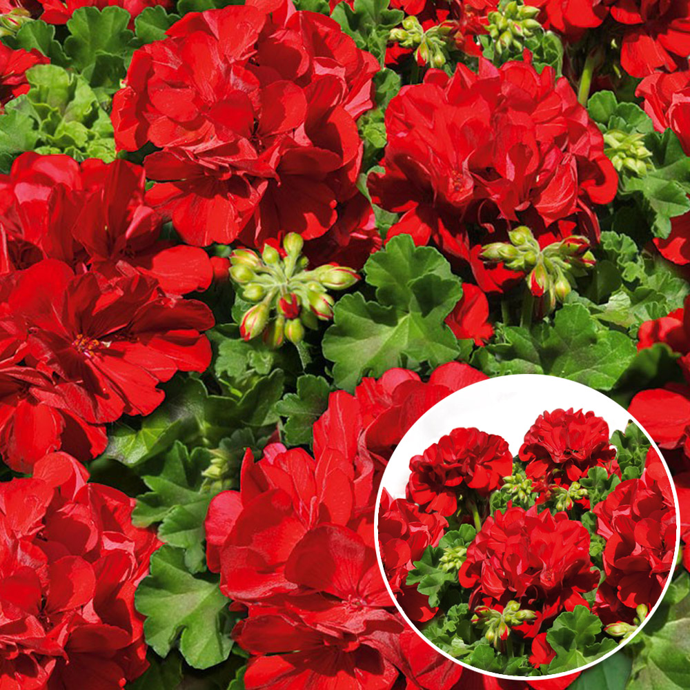 Obsah balenia:3 ks Špičkový polovzpriamený, poloťahavý muškát. Tmavočervený kvet, jasnozelené lístie, guľaté, loptovité kvety - zázrak na celé leto!
