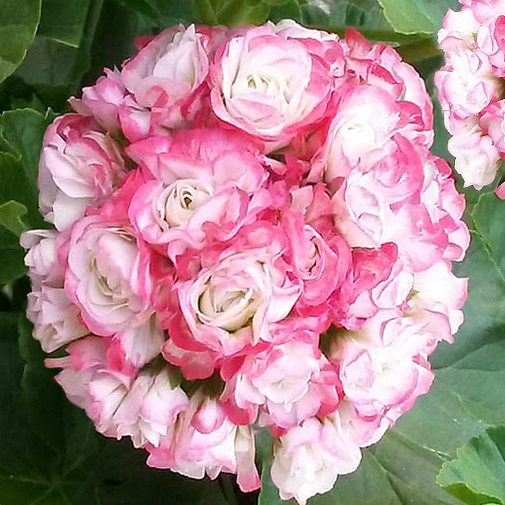 Obsah balenia:3 ks Prekrásny vzpriamený muškát s kvetmi v tvare ruží. Kvety sú plné, biele s ružovými okrajmi. Vhodné do kvetináčov, nádob i do záhona.