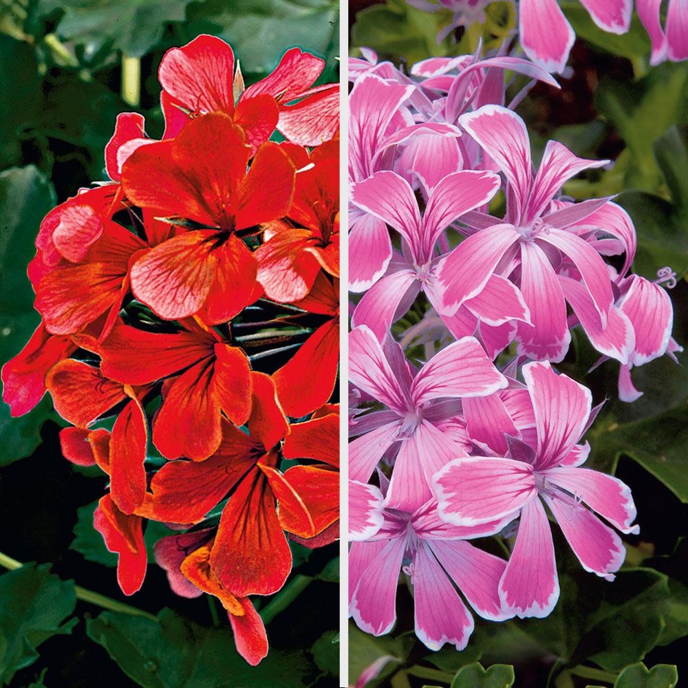 Obsah balenia:6 ks Duo ako zo sna. Farebná kombinácia z dvoch farieb. 3 červené muškáty Tirolský oheň + 3 ružové muškáty Stellena.