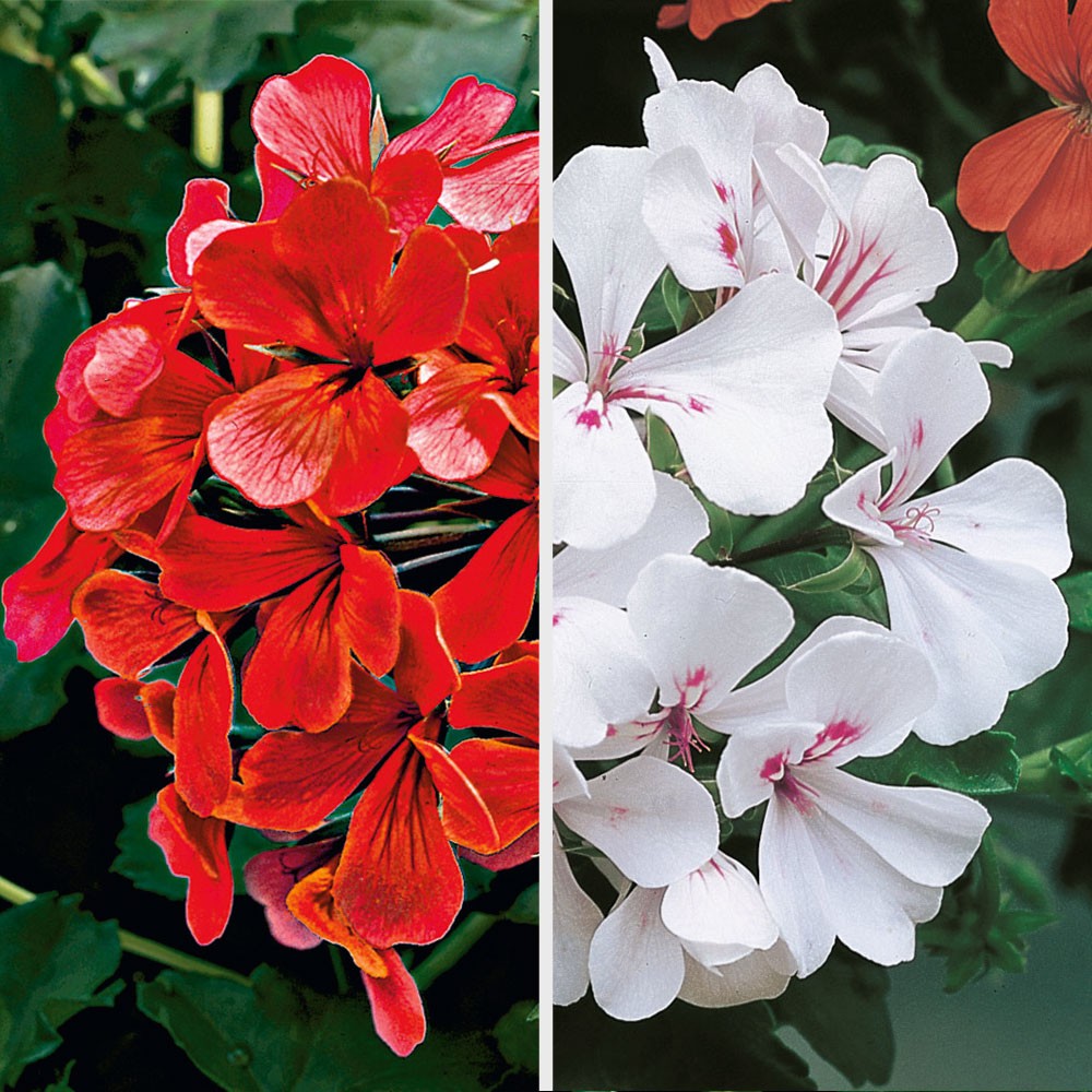 Obsah balenia:6 ks Duo ako zo sna. Farebná kombinácia z dvoch farieb. 3 červené muškáty Tirolský oheň + 3 biele muškáty Alpina