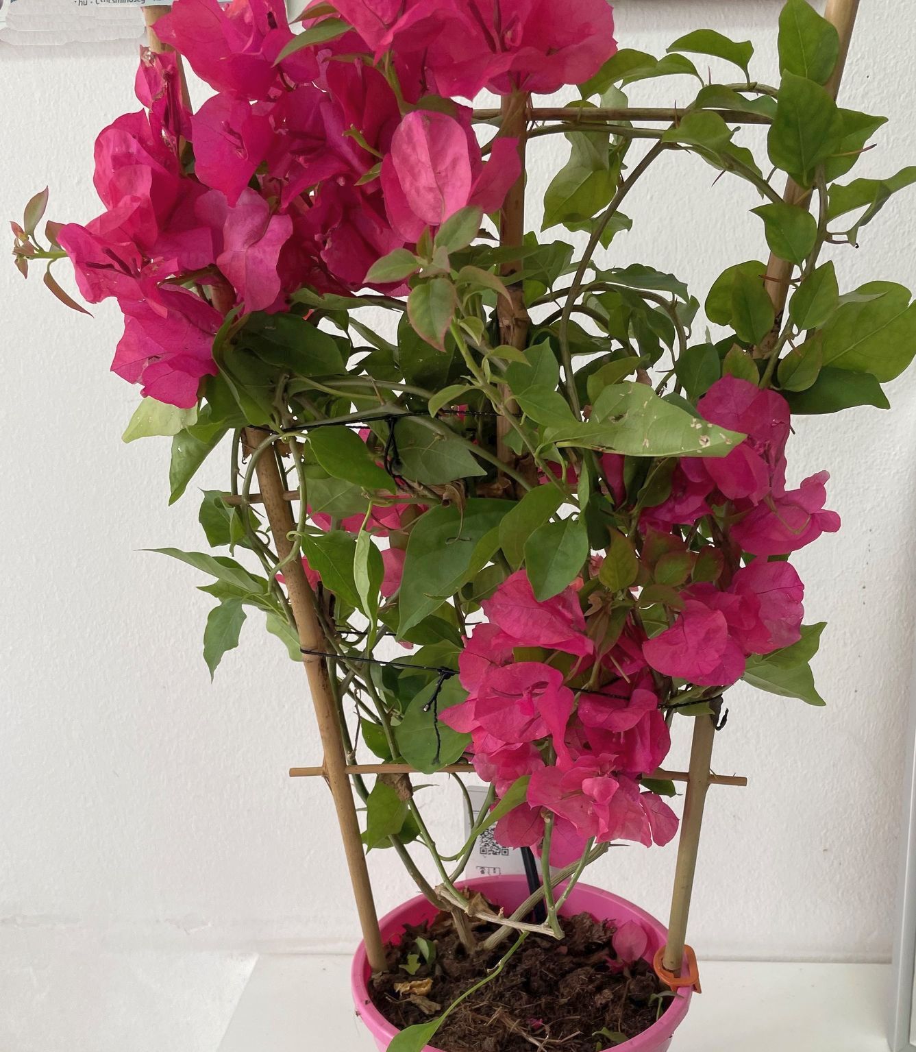 Viacfarebná bougainvillea je popínavý ker, ktorý pochádza z Brazílie. V krajine z ktorej pochádza sa používa bougainvillea namiesto plotu, lebo má silné pichláče. U nás treba prezimovať na svetlom a vzdušnom mieste 8 až 10 °C. Kvitne malými kvietkami, má výrazné olistenie, ktoré sú fialovej alebo ružovej farby.