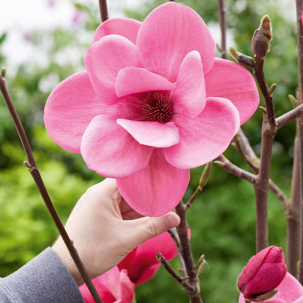 Obsah balenia:1 ks Táto výnimočná odroda magnólie zaujme svojimi 15–20 cm veľkými, poloplnými kvetmi v intenzívnom melónovo ružovom odtieni. Kvitne v apríli. Vďaka svojmu harmonickému vetveniu sa výborne hodí ako solitérna rastlina do predzáhradiek a záhonov. Odroda pochádza z USA a vyznačuje sa nielen bohatým kvitnutím, ale aj dobrou mrazuvzdornosťou. Magnólia má plytký koreňový systém, preto je vhodné jej okolie mulčovať, aby sa v horúcich letných dňoch zabránilo rýchlemu vysychaniu pôdy. Pôda by mala byť mierne kyslá. Rastliny sadíme na chránené, slnečné alebo polotienisté stanovište. V dospelosti dosahuje výšku približne 4–6 m a šírku okolo 3 m.