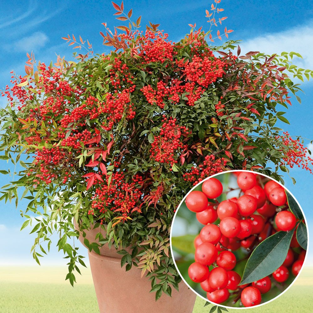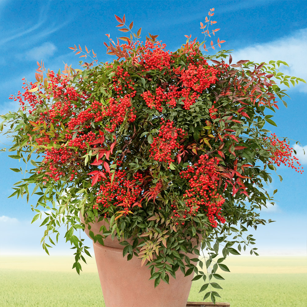 Obsah balenia:1 ks Prekrásny vždyzelený ker. Mladé výhony sú bronzové až koralové, v lete sa menia na tmavo zelenú a na jeseň sa sfarbujú do žiarivo červenej. Začiatkom leta zdobí krémovo sfarbenými kvetmi. Farba lístia je najžiarivejšia na jeseň; v tomto období prináša aj svoje červené, nejedlé plody. V Japonsku sa teší posvätnej úcte. Preferuje slnečné, teplé a chránené stanovisko. Zimná ochrana je potrebná. Kvitne: jún – september. Pozor! Jedovaté plody!