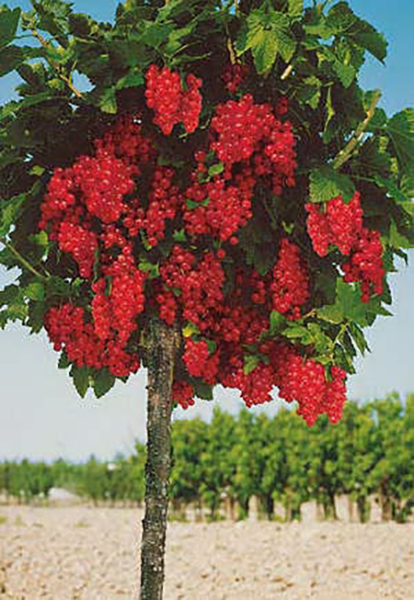 PLODY: Tmavočervené, známe ako „ríbezľa vínna“. Prvé kvety a plody sa objavujú v treťom roku po výsadbe – potom sa očakáva každoročná úroda.