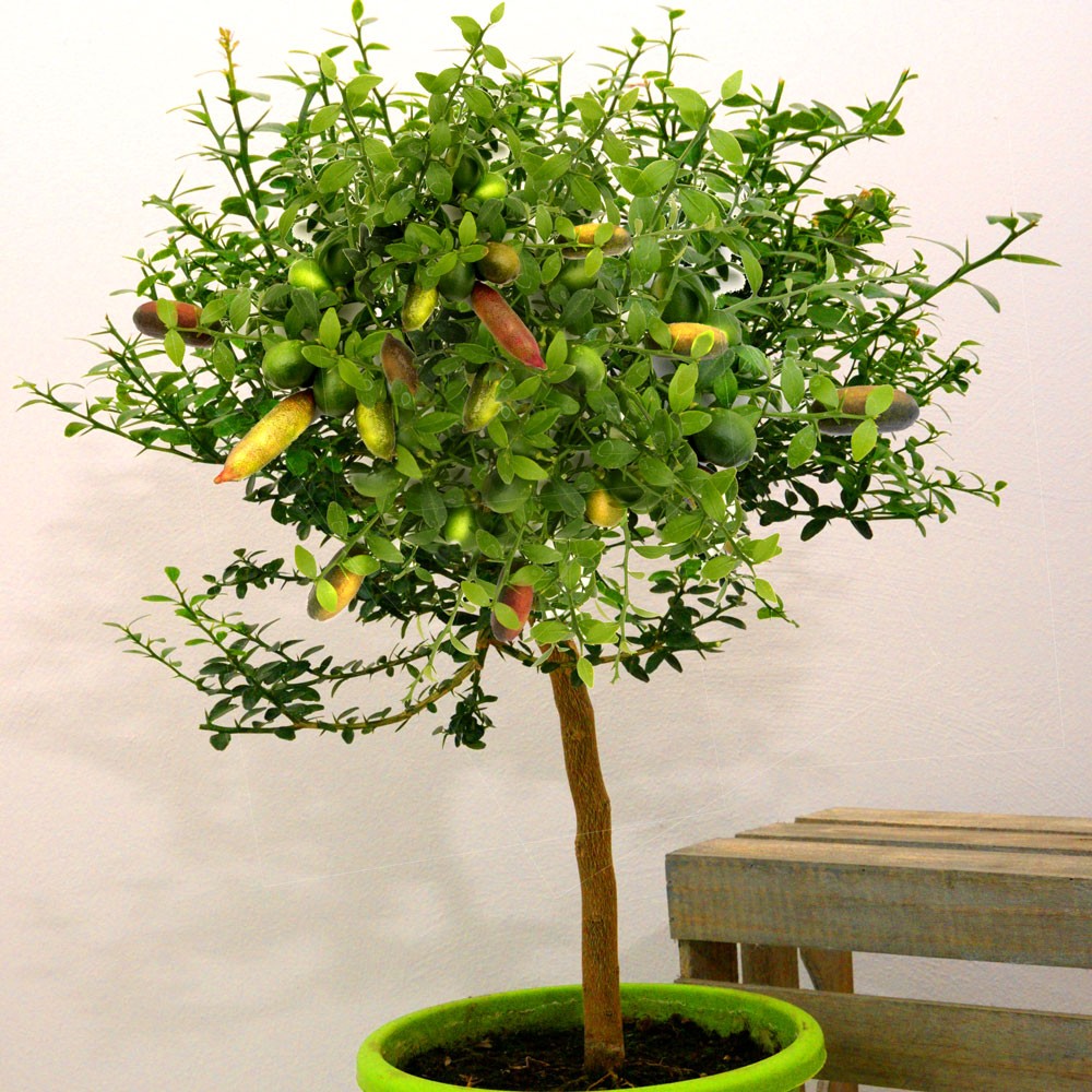 Obsah balenia:1 ks Túto rastlinu charakterizujú drobné, vždyzelené listy a stovky farebných plodov. Nie je náročná na starostlivosť. 8 cm dlhé plody menia svoju farbu podľa miery zrelosti. Ak sú plody zrelé, dužina svojím vzhľadom pripomína kaviár. Jedlám dodá výbornú citrónovú vôňu. Pestuje sa ako prenosná rastlina v nádobe. Zazimujte na chránenom
