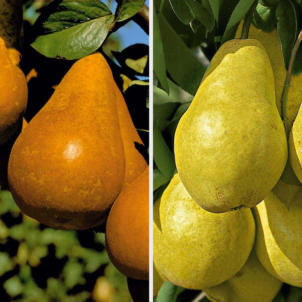 Obsah balenia:1 ks Dve vzájomne opeľujúce, vynikajúce odrody na jednom strome. •Wiliamsova• obľúbená letná odroda, dozrieva koncom augusta. Podlhovasté plody majú zelenú, v plnej zrelosti žltú farbu šupky a bielu dužinu. Chuť je jemná, sladká, šťavnatá. •Conference• anglická, jesenná odroda hrušky. Nenáročná na pôdu aj polohu. Zber od polovice septembra. Konzumnú zrelosť dosahuje na prelome októbra – novembra. Plody sú stredne veľké, pretiahnutého tvaru. Šupka je zelená s nepravidelnými zlatohnedými fliačikmi. Dužina je biela, sladká, šťavnatá.
