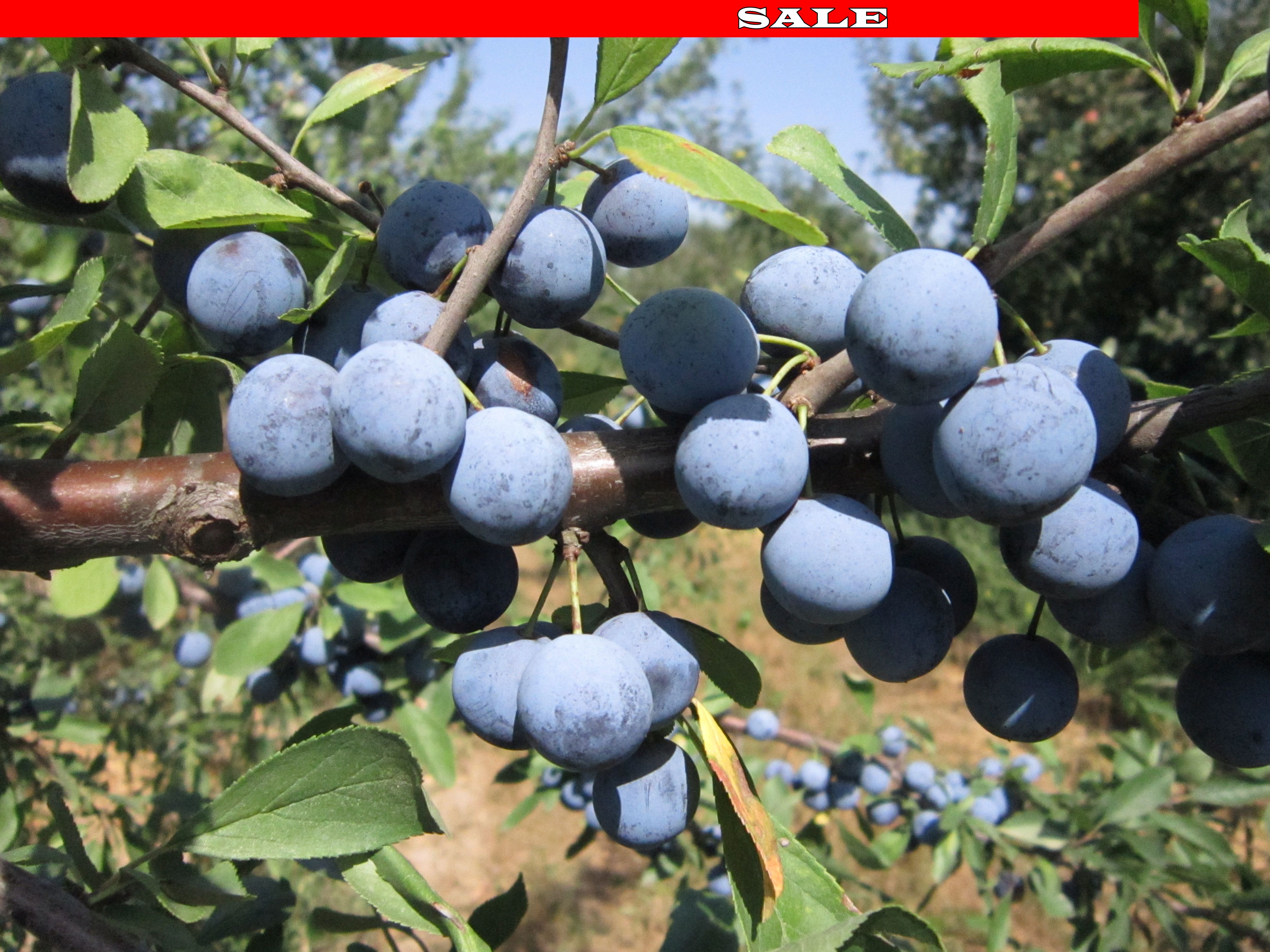 PLODY: Dozrievajú september až október. Šupka nezrelých plodov je zelená, po dozretí je tmavo modrá, srienistá voskovou vrstvou.
