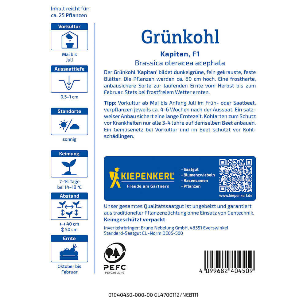 Obsah balenia:1 ks Zelený kel. Lahodná zimná zelenina. Tmavo zelené, jemne zvinuté, tvrdé listy. Odroda odolná voči mrazu a nenáročná na pestovanie. Zbierať sa dá od jesene do februára.
