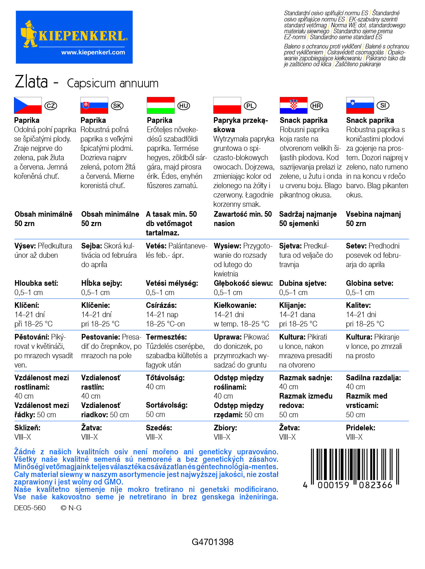 Obsah balenia:1 ks Robustná poľná paprika s veľkými špicatými plodmi. Dozrieva najprv zelená, potom žltá a červená. Mierne korenistá chuť. Obsah sáčku minimálne 50 semien.