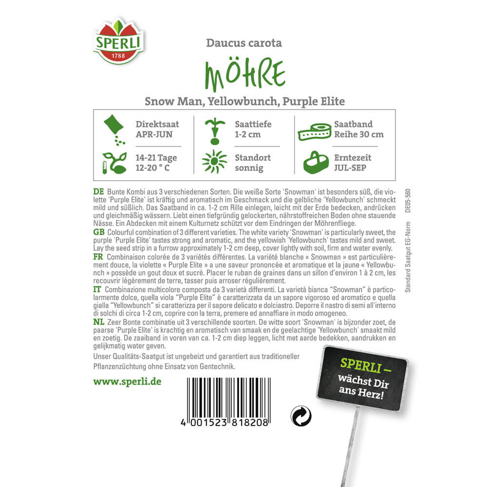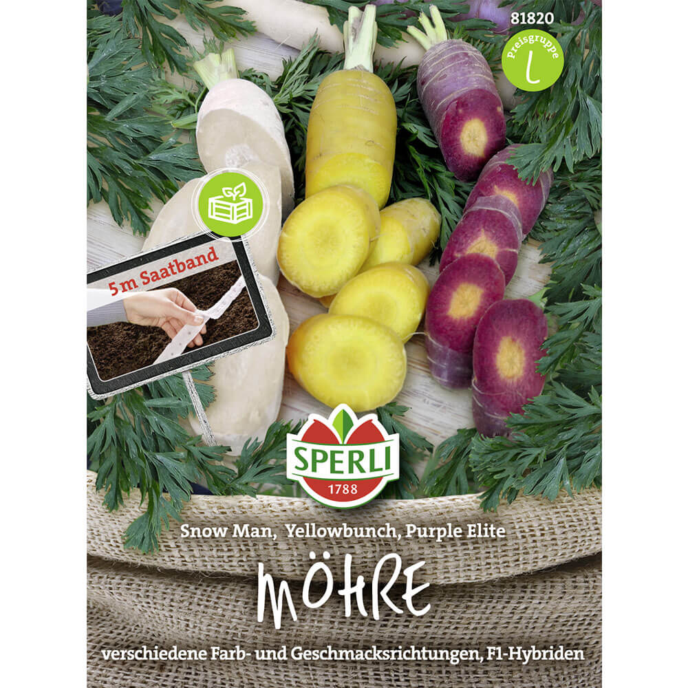 Obsah balenia:1 ks Kombinácia troch farieb a chutí. 'Snow Man' je biela, obzvlášť sladká, 'Purple Elite', ako naznačuje jej názov, je fialová a silne aromatická, žltkastá 'Yellowbunch' má mierne sladkú chuť. Výsevný pás: 5 m.
