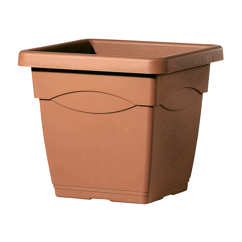 Kvetináč z recyklovaného plastu. Farba: terakota. Rozmery: 38 x38 cm, výška 33,5 cm.