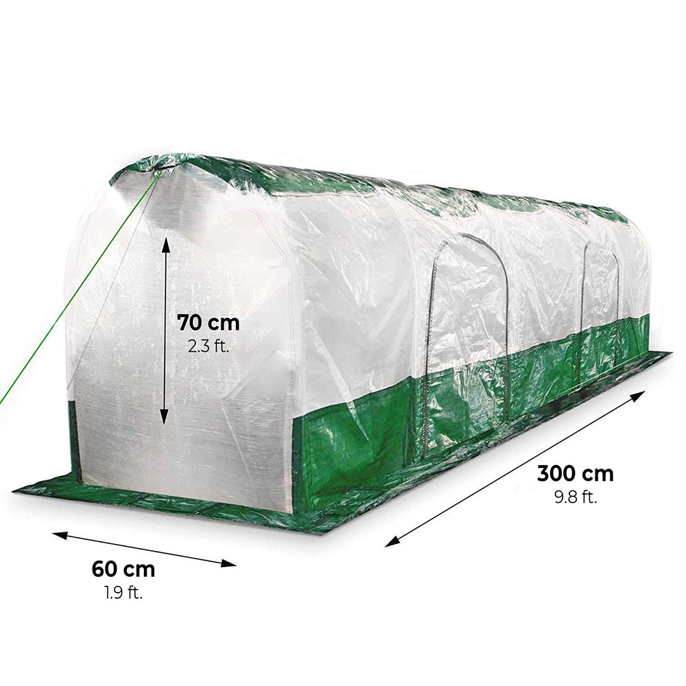 Obsah balenia:1 ks Fóliový tunel 'Superdome' vám zaručí ochranu mladých sadeníc pred mrazom a horúčavou. Do strechy fóliového tunela je všitá tieniaca fólia tak, aby sadeničky boli chránené pred ostrým poludňajším slnkom. Dva vchody uľahčujú vetranie, starostlivosť o rastlinky a zalievanie. Vyrobené z pevnej, silnej skleníkovej fólie (90 g/ m²), očká zvárané ultrazvukom – odolné proti roztrhnutiu, 4 mm hrubé tyče z nerezovej ocele. Vrátane napínacích lán a kolíkov na ukotvenie. Rozmery: 80 x 70 x 300 cm. Hmotnosť: 3,5 kg.