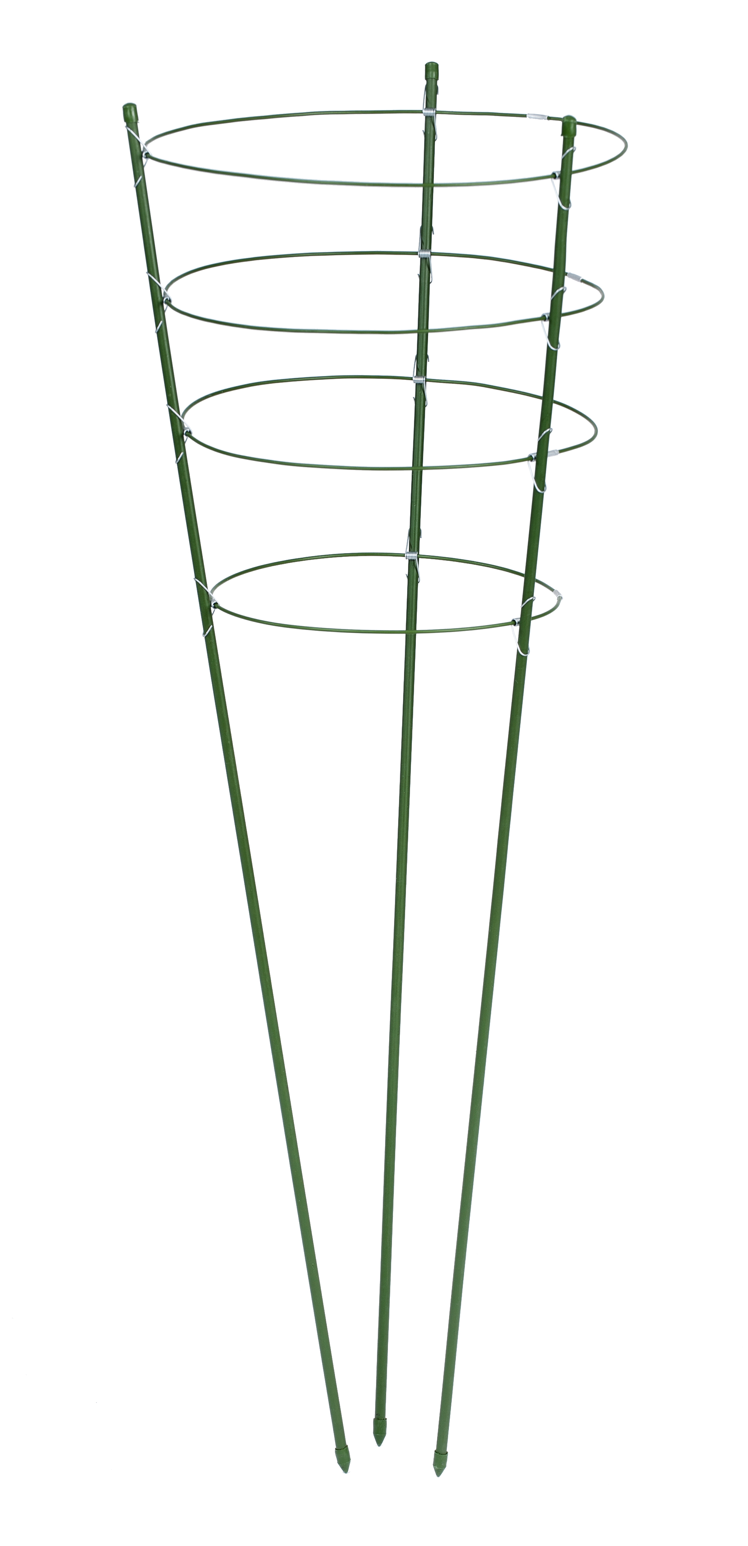 Obsah balenia:1 ks Opora pre rastliny v tvare kruhu. 3 oporné tyče a 4 kruhové obruče. Poskytuje stabilnú oporu pre rastliny v kvetináčoch alebo záhonoch. Na použitie v interiéri aj exteriéri. Oporu možno použiť pre všetky rastliny so slabými alebo krehkými stonkami, alebo pre rastliny, ktoré trpia na lámanie pod ťarchou vlastných plodov. Materiál kov potiahnutý plastom zelenej farby. Výška: 90 cm, priemer obručí: 22, 27, 28 a 29 cm.